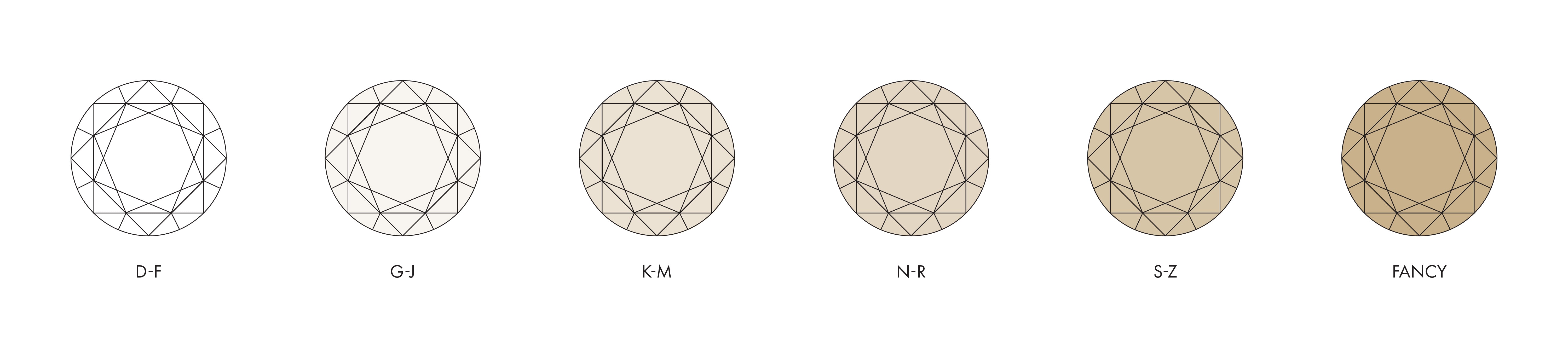 Color refers to the natural body color of a diamond and not to the reflection of spectral colors that flash when a diamond moves. Most diamonds naturally exhibit slight hints of yellow, brown, or grey, and so the less color a diamond exhibits, the higher it’s value due to the rarity of colorless material. Color quality is graded via an alphabetical system, ranging from D (colorless) to Z (light yellow). Each letter grade represents a range of color and is a measure of how noticeable that color is.